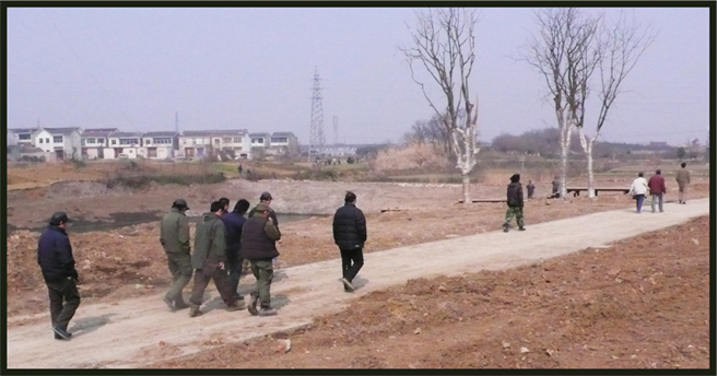 正往工作现场去的艺术家们景观工作照片